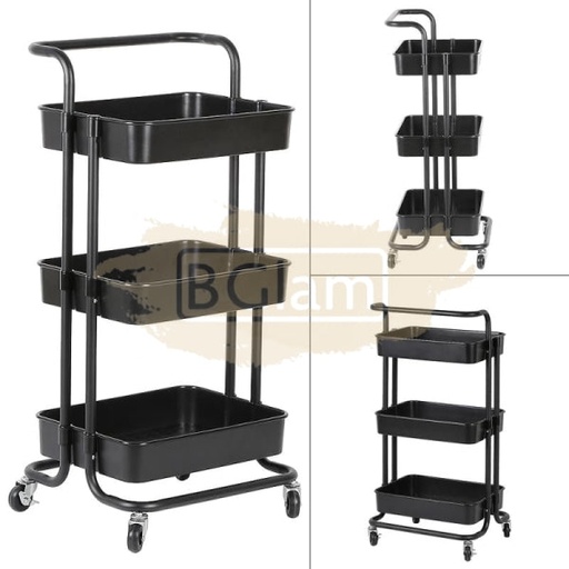 3-Tier Metal Storage Organizer Rolling Cart with handle - Black