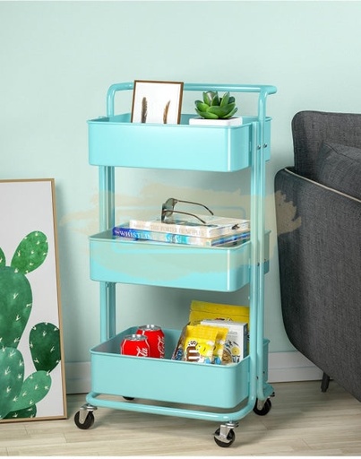 3-Tier Metal Storage Organizer Rolling Cart with handle - Green